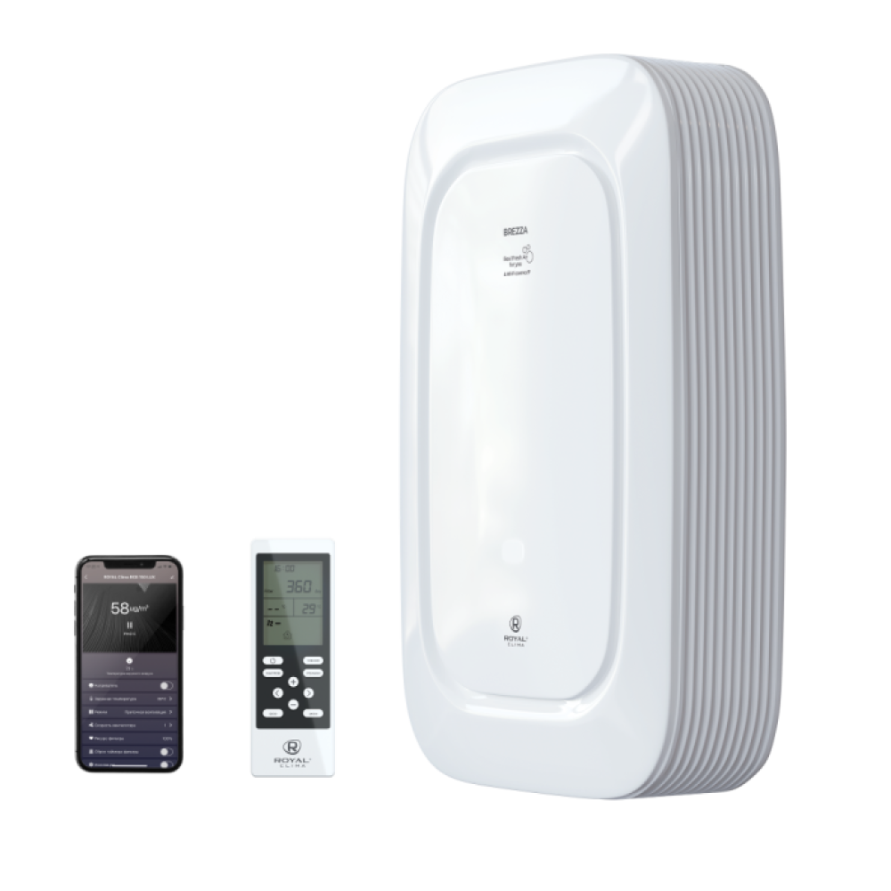 Приточно-очистительный комплекс BREZZA подает свежий, насыщенный кислородом, воздух с улицы в помещение площадью до 75 м2.