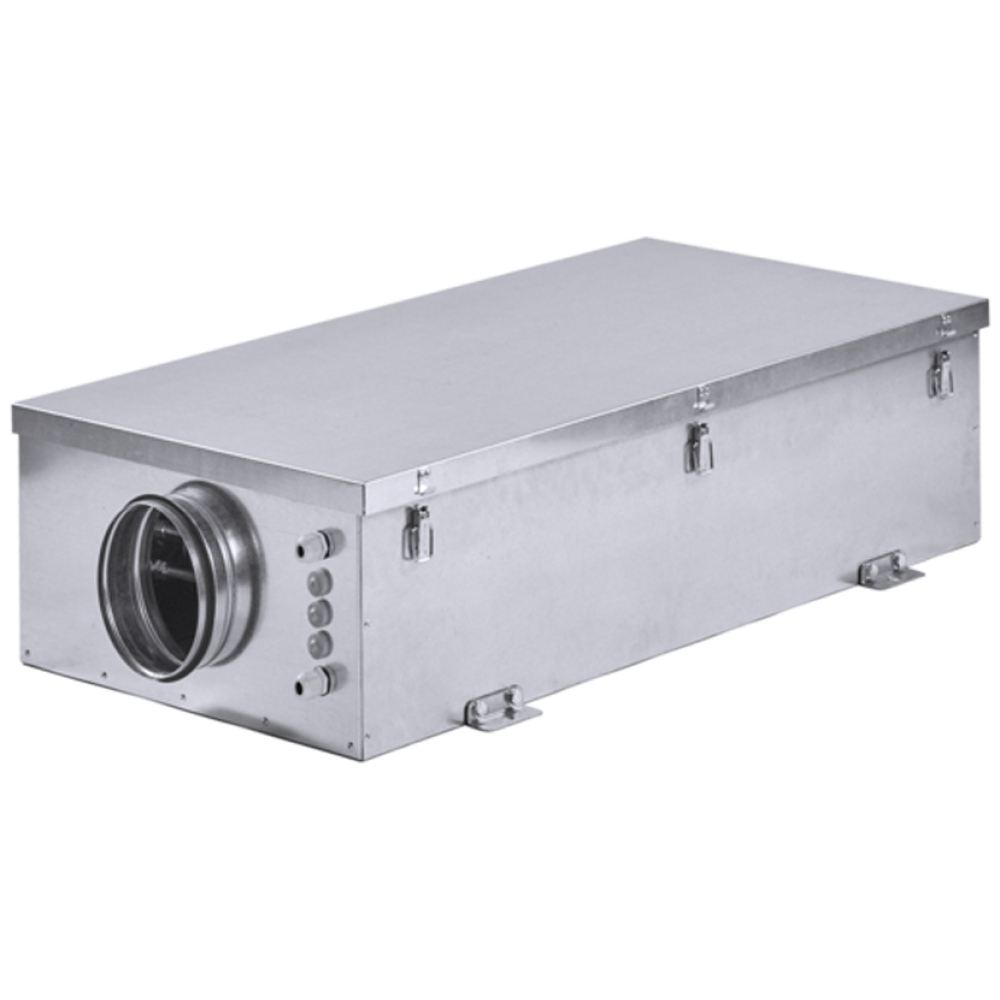 Компактные приточные установки ZPE/ZPW INT оснащены фильтром класса G4, высокопроизводительным вентилятором, водяным медно-алюминиевым, или электронагревателем с ТЭНами из нержавеющей стали. Корпус выполнен из листовой оцинкованной стали и имеет толщину 25 мм.