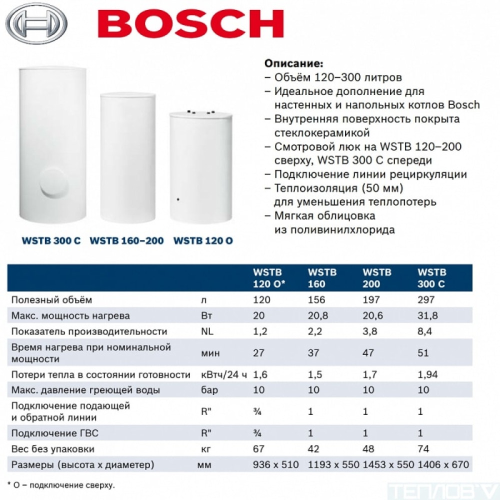 Бойлеры косвенного нагрева Bosch WSTB имеют внутреннее стеклокерамическое покрытие, которое обеспечивает защиту бака от коррозии и абсолютную гигиеничность приготовления ГВС. Данное покрытие было специально разработано в отделе исследований и разработок компании Bosch. Каждый бойлер косвенного нагрева Bosch был специально разработан для российских уcловий и приспособлен к работе с жёсткой водой. Теплоизоляция бойлеров Bosch выполнена из безопасных материалов и минимизирует тепло- потери бойлера в режиме готовности.