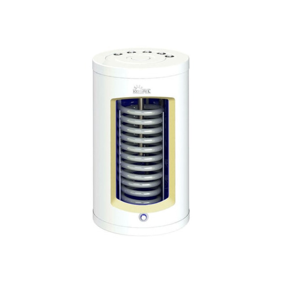Бойлер косвенного нагрева Kospel SWK 120 A служит для нагрева горячей воды от контура отопления настенного или напольного котла. Теплообменник с спиральным змеевиком - патрубки вверху, для монтажа под настенным отопительным котлом. Удобство эксплуатации и установки данного бойлера обусловлена наличием всех гидравлических узлов сверху бойлера при этом бак устанавливается под котлом и не занимает много места. В конструкции бойлера предусмотрена гильза для установки температурного датчика.