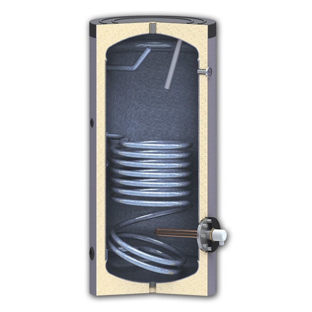 Напольный бойлер косвенного нагрева SUNSYSTEM SN 150 - это серия профессионального оборудование. Бойлеры используют для обеспечения нагрева бытовой горячей воды. Они могут комбинироваться с солнечной панелью-коллектором и/или с котлом. Внутренняя поверхность бака изготовлена из стали и имеет покрытие титановой стеклоэмалью. Бойлер SUNSYSTEM SN 150 покрыт жёсткой теплоизоляцией толщиной в 50 мм, так же в бойлере предусмотрено большое ревизионное окно для обслуживания и чистки бака.