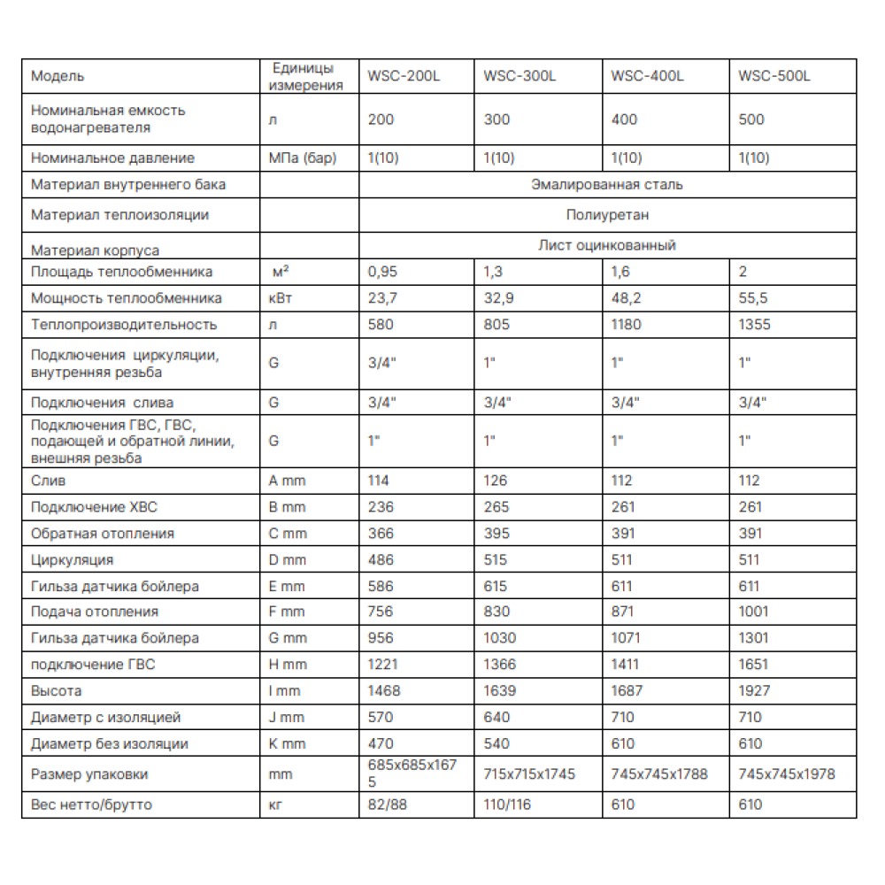 WSC-200L/300L - несколько водонагревателей могут быть подключены параллельно и установлены с одинаковым расходом для удовлетворения большей потребности в воде. Отличие WTC-150L - все патрубки подключения находятся сверху, что делает его удобным в монтаже с настенным одноконтурным котлом – бойлер монтируется непосредственно под котлом, получается компактная установка.