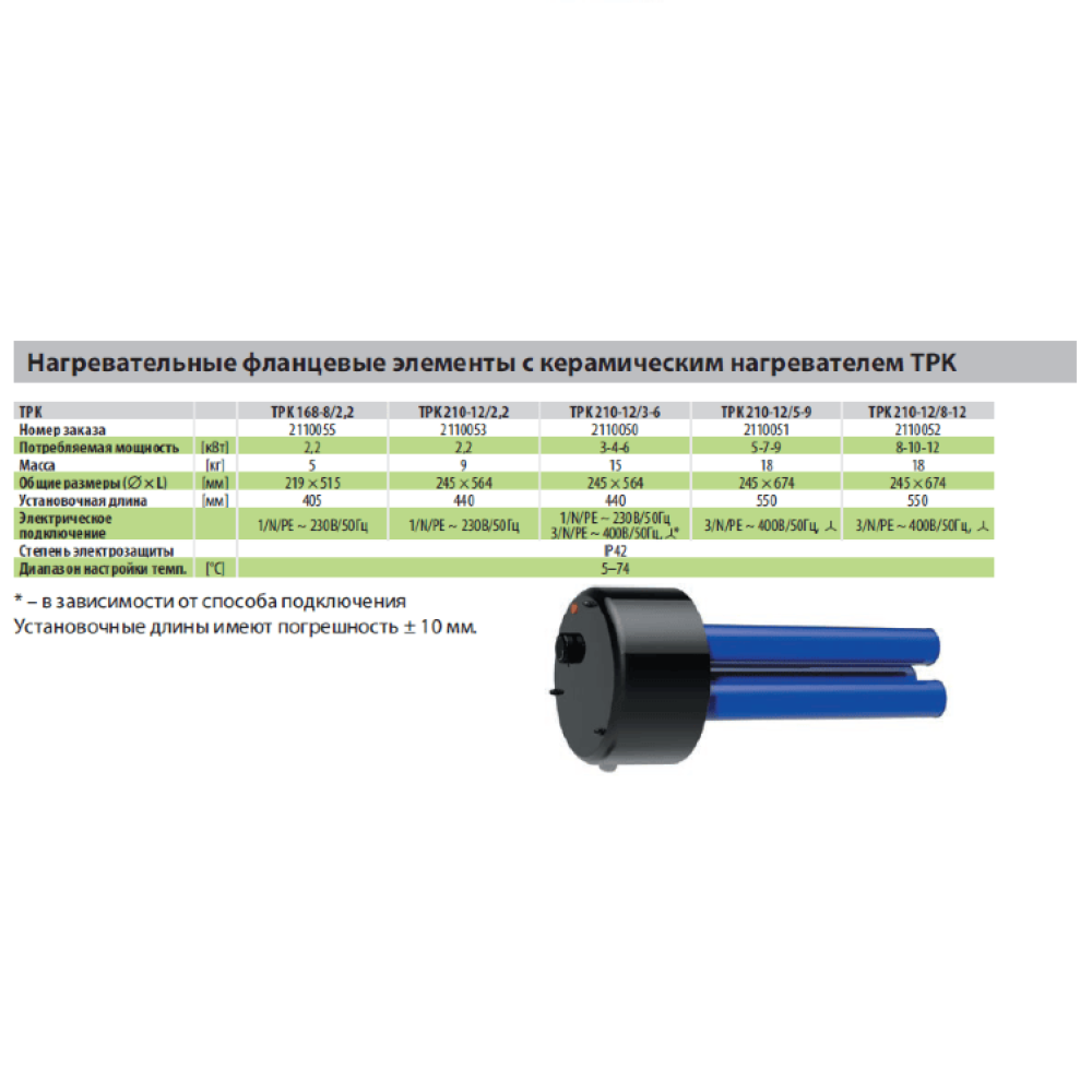 Drazice TPK 210-12/3-6 – это оборудование для электрического нагрева ГТВ, монтируемое на фланцевом отверстии водонагревателей типа OKCE 100–300 S, OKC 100–300 NTR(NTRR)/BP. Устройство для нагрева воды оборудованное керамическими термоэлементами, рабочим и предохранительным термостатами, с возможностью регулирования температуры ГТВ в диапазоне от 0 до 77 °C. По своей конструкции они предназначены только для нагрева воды до давления в резервуаре 1 МПа с температурой 110°C.