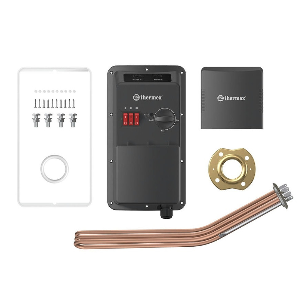 Панель управления THERMEX в сборе с тэном 6 кВт подходит к накопительным и косвенным водонагревателям с фланцем 64 мм.