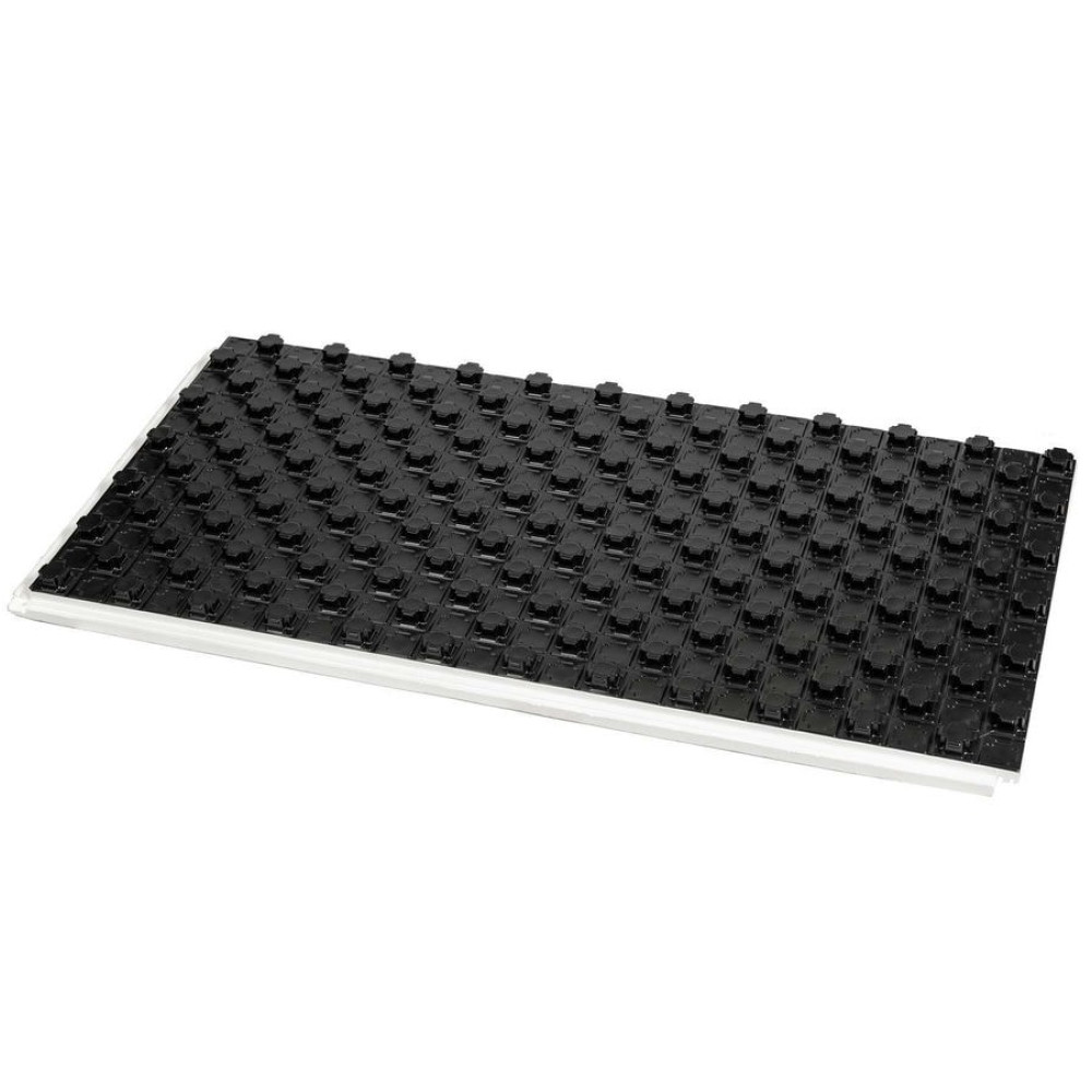 Формованные маты из пенополистирола с жесткой PS-пленкой для монтажа водяного теплого пола с шагом укладки трубы 50 мм. Выступающие элементы (т.н. «бобышки») плотно фиксируют отопительные трубы с первого раза. Благодаря им, применения сетки, хомутов или скоб не требуется. Жесткая полистирольная пленка обеспечивает дополнительную прочность плит, защищает от влаги и продлевает срок службы всей системы.