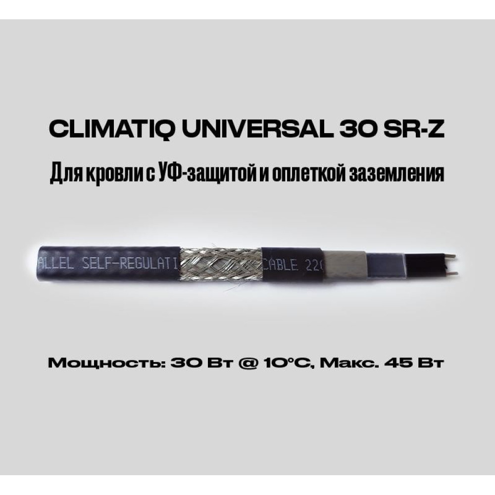 Саморегулирующиеся кабели CLIMATIQ U 30 SR-Z, предназначены для борьбы и предупреждения образования наледи и сосулек в сегменте кровель (водосточные системы, карнизные свесы, водоприемные устройства, ендовы, кромки кровель, периметр рам и нижняя часть мансардных окон и пр.). Также кабели могут быть установлены на поверхность трубопроводов для защиты от замерзания.