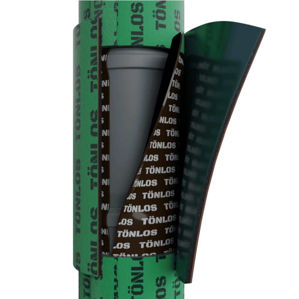 Из-за маленького веса пластиковые трубы не держат звук внутри, и он за долю секунды расходится по квартире. Чтобы это предотвратить, в Tonlos PIPE есть сразу два звукоизолирующих слоя. Каждый решает свои задачи.