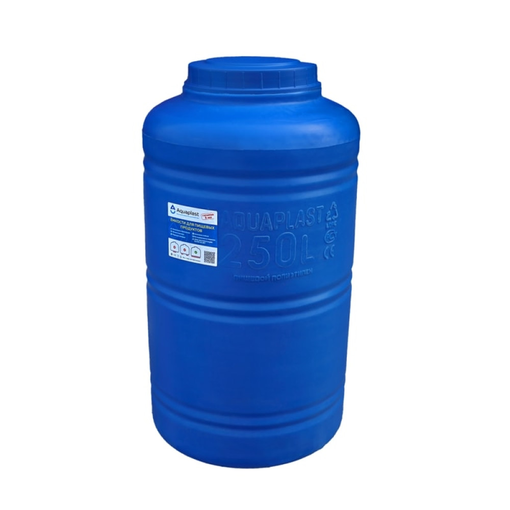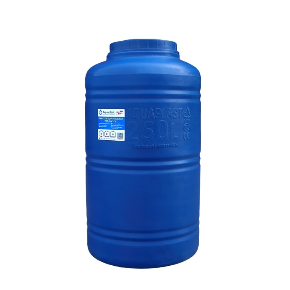 Бак для воды 250 литров вертикальный синего цвета, для хранения чистой питьевой воды. Пластиковые баки Aquaplast имею компактные размеры легко поддаются транспортировки и отвечают всем мерам и требованиям безопасности.