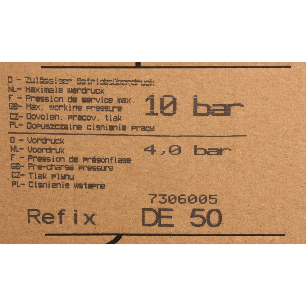 Reflex DE 50 представляет собой гидропневмобак с заменяемой мембраной.Гидроаккумулятор изготовлен из высококачественных материалов, имеет полимерное покрытие, поставляется без запорной и сливной арматуры.
