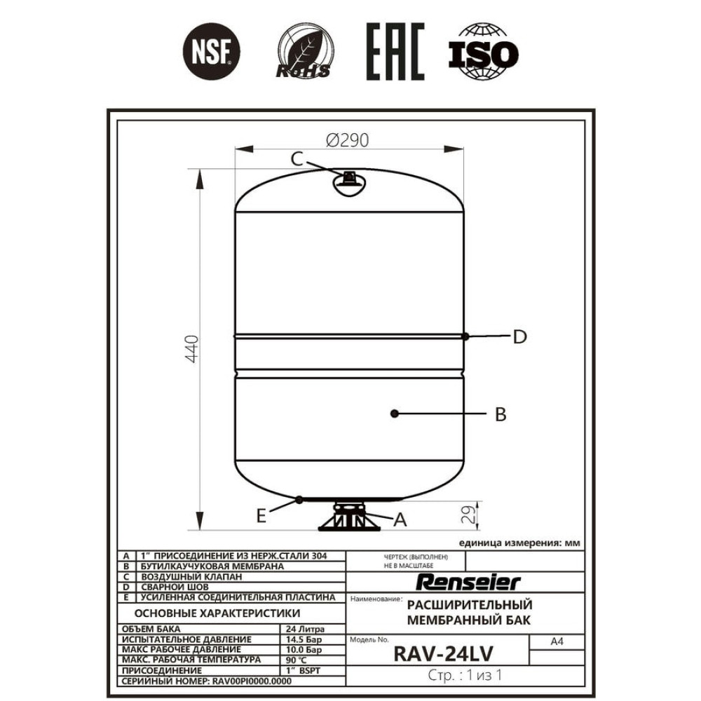 Гидроаккумулятор Renseier RAV-24LV вертикальный