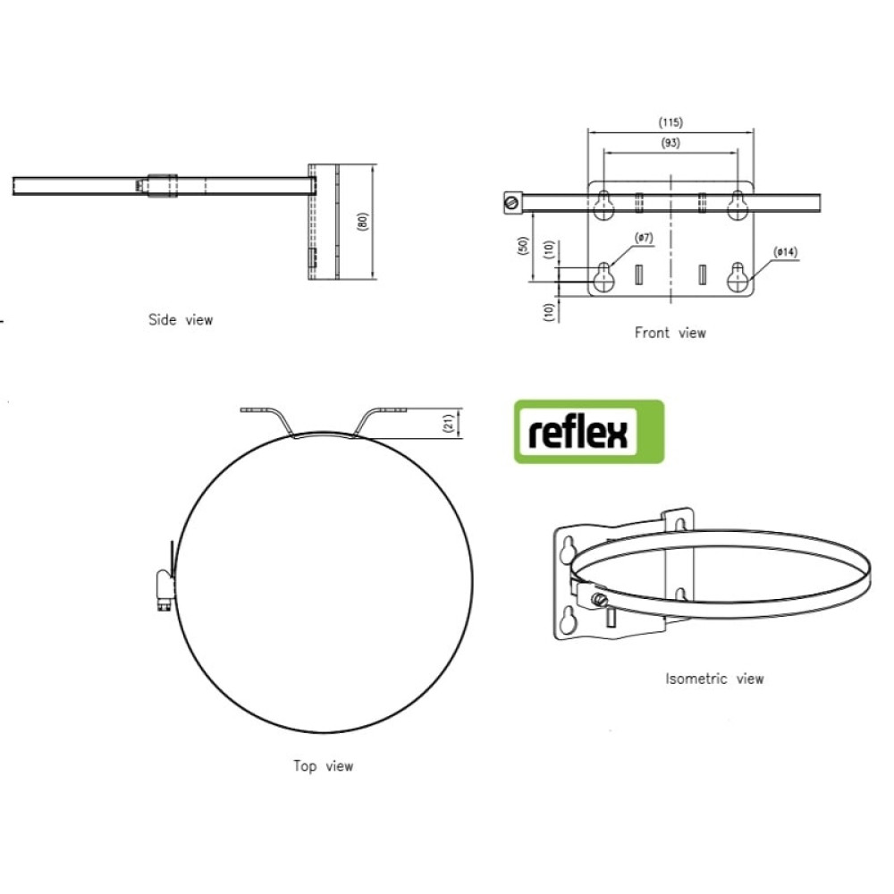 Настенный крепёж Reflex в виде консоли с ленточным хомутом для мембранных расширительных баков. Предназначается для монтажа баков отопления на стену.