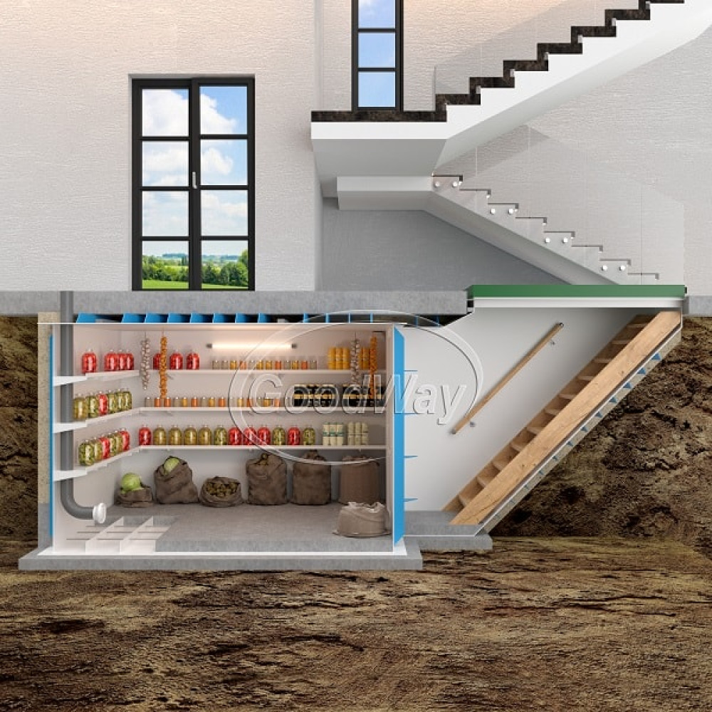 Представьте только! В вашем загородном доме или на даче всегда хранятся продукты и алкоголь! Ваши запасы защищены от температурных колебаний, плесени, влаги и грызунов! С погребом "ГудВэй Люкс" вы будете не только хранить продукты, но и выращивать больше урожая или пробовать новые рецепты своих заготовок! Выберите любой размер погреба модели "ГудВэй Люкс".