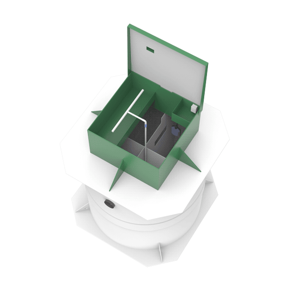 Станция с принудительным отводом воды и биофильтром.