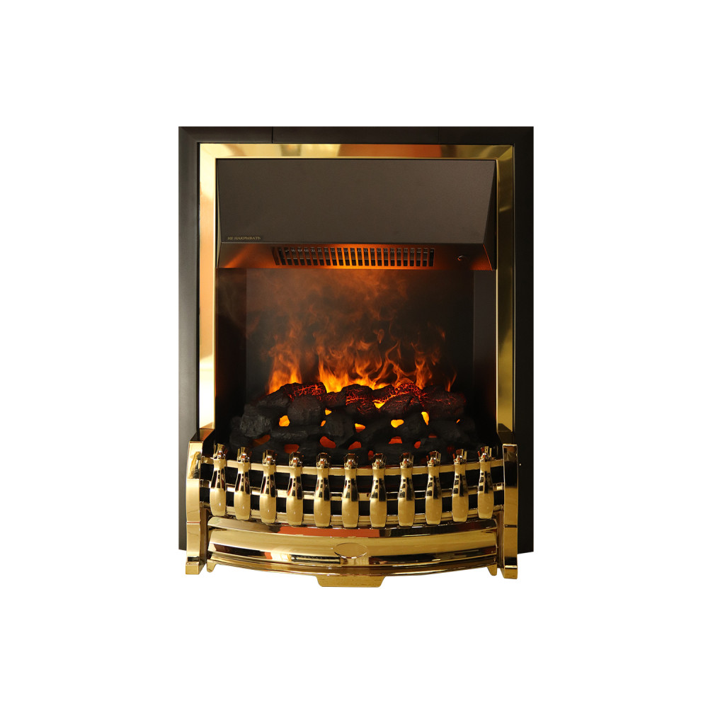 Электрический очаг Dimplex Atherton серии Opti-Myst с эффектом реального пламени. Этот стильный классический очаг в обрамлении золотого цвета предназначен для встраивания в порталы, выполненные в классическом стиле.