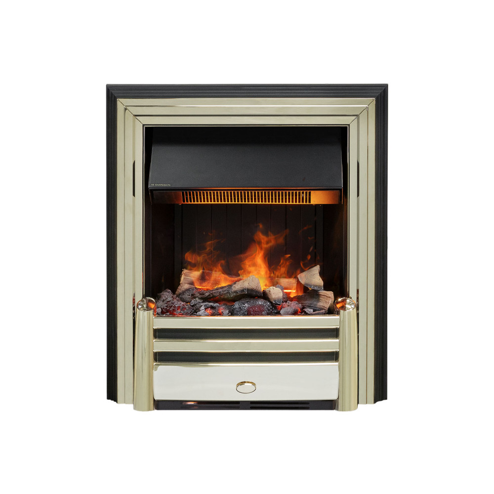 Электрокамин выполнен в золотом цвете. Золото – это материал, который никогда не выйдет из моды, это свидетельство безупречного вкуса и верности традициям. Цвет золота подчёркивает неповторимый стиль и необычность этого камина. К очагу можно подобрать любой портал, который подойдет к вашему интерьеру и станет его лаконичным продолжением. В очаге Dimplex Cavendish применяется эффект «живого» пламени Opti-Myst, в основу которого заложен инновационный принцип имитации огня - в очаге мерцает пламя, практически неотличимое от настоящего. В камине используется муляж дров ручной работы, которые невозможно отличить от настоящих поленьев, а благодаря подсветке создается полная имитация жарко пылающего очага.