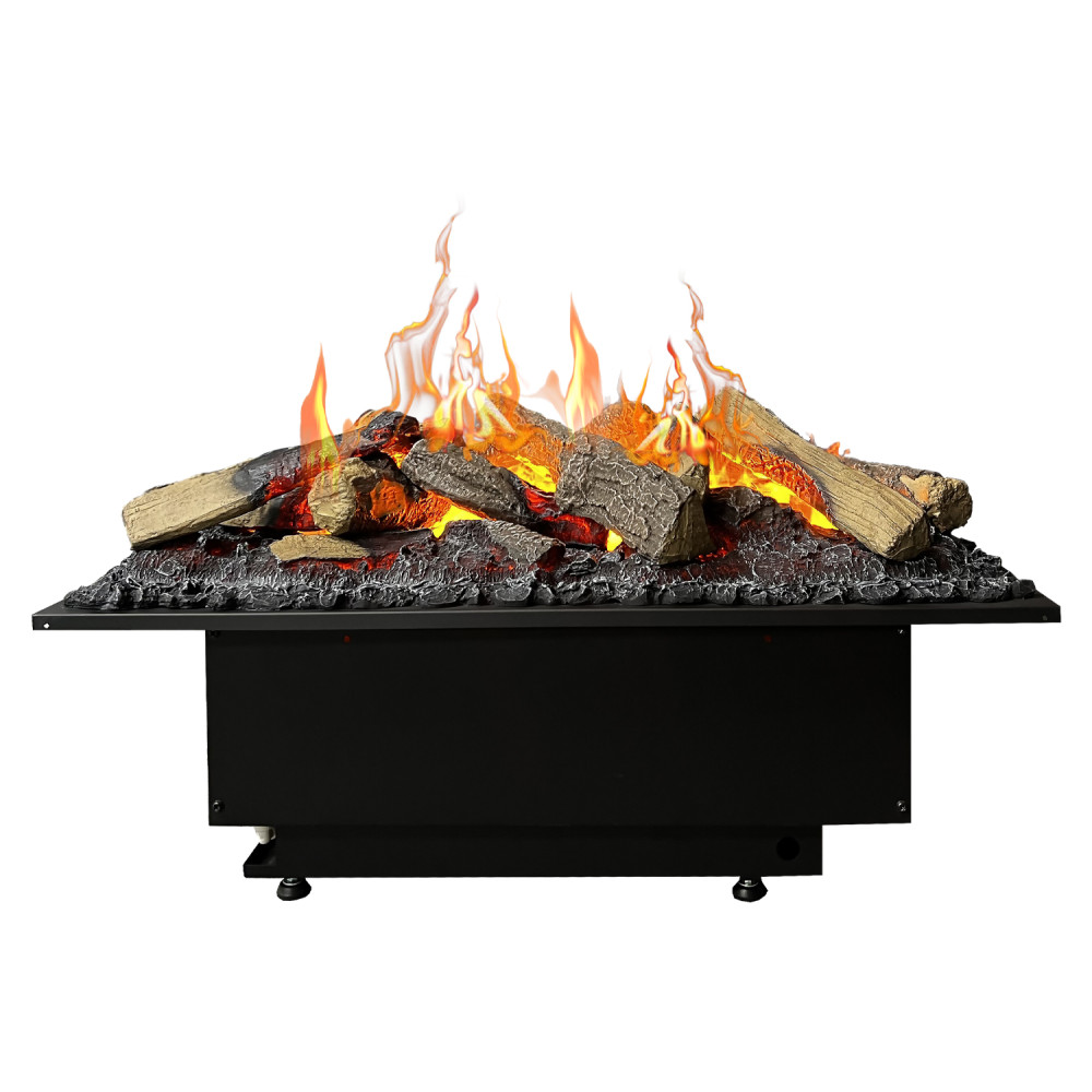 В очаге предусмотрена функция потрескивания горящих поленьев. Также добавлены такие опции, как возможность изменения интенсивности пламени в различных зонах очага и управление камином через беспроводной Bluetooth пульт ДУ.