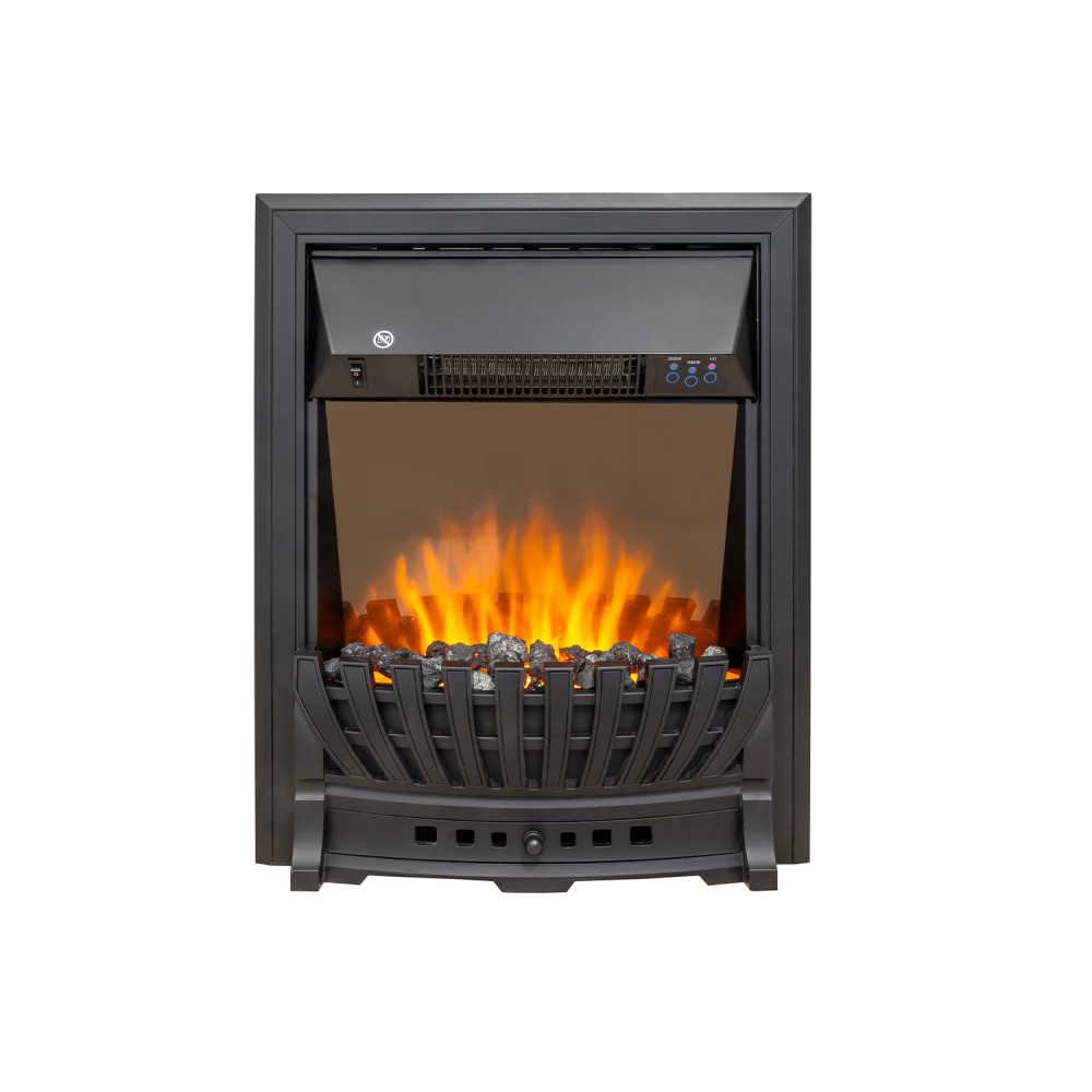 Очаг Aspen Black выполнен в строгом классическом стиле. Передняя часть очага украшена изысканной решеткой. Данная модель представлена в черном цвете. Как и в других моделях Royal Flame, в Aspen создается иллюзия игры языков пламени, напоминающая настоящий огонь. В качестве декоративного «топлива»используются муляжи в виде реалистичных углей. В очаге предусмотрена 2-х уровневая система обогрева. В комплекте к данной модели идет пульт ДУ, что позволит включать и выключать его, не вставая с любимого кресла.