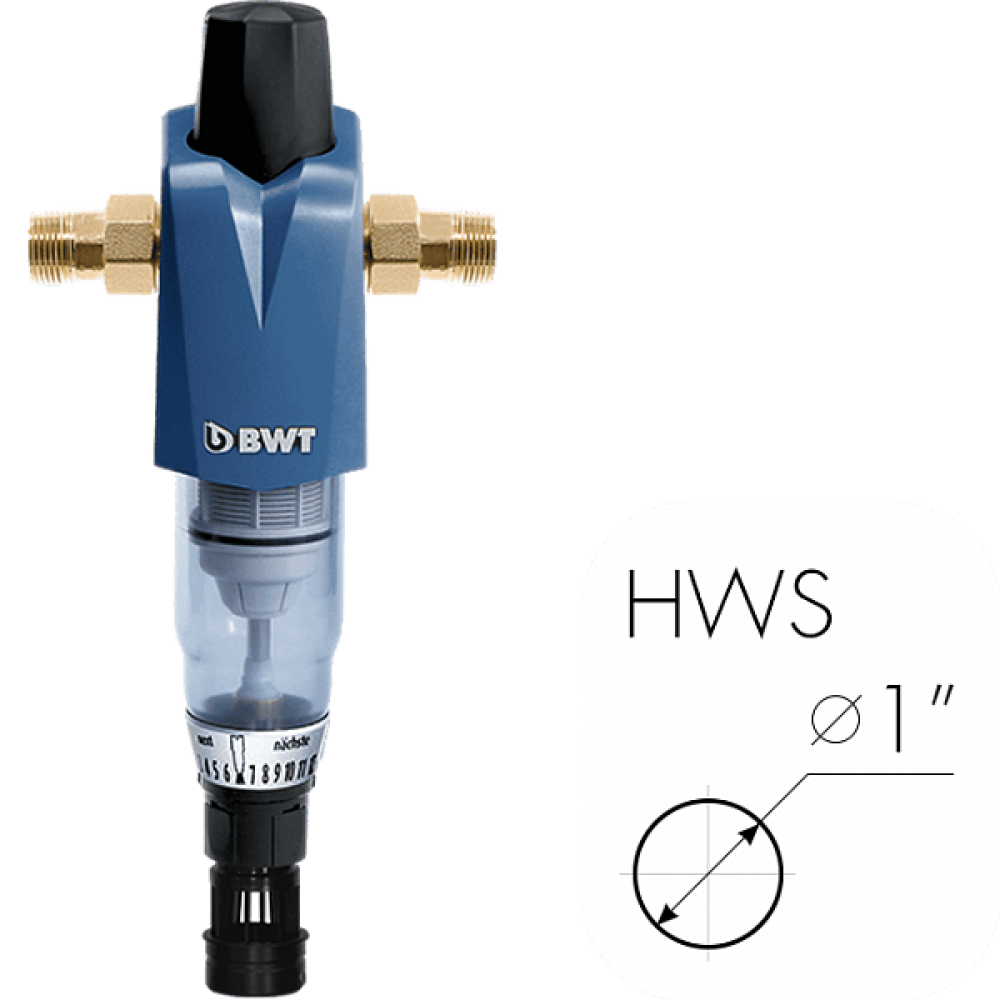 Фильтр механической очистки с редуктором и обратным клапаном BWT Infinity M 1” HWS «Премиум» класса - фильтр предварительной очистки воды с модульным подключением и ручной обратной промывкой.