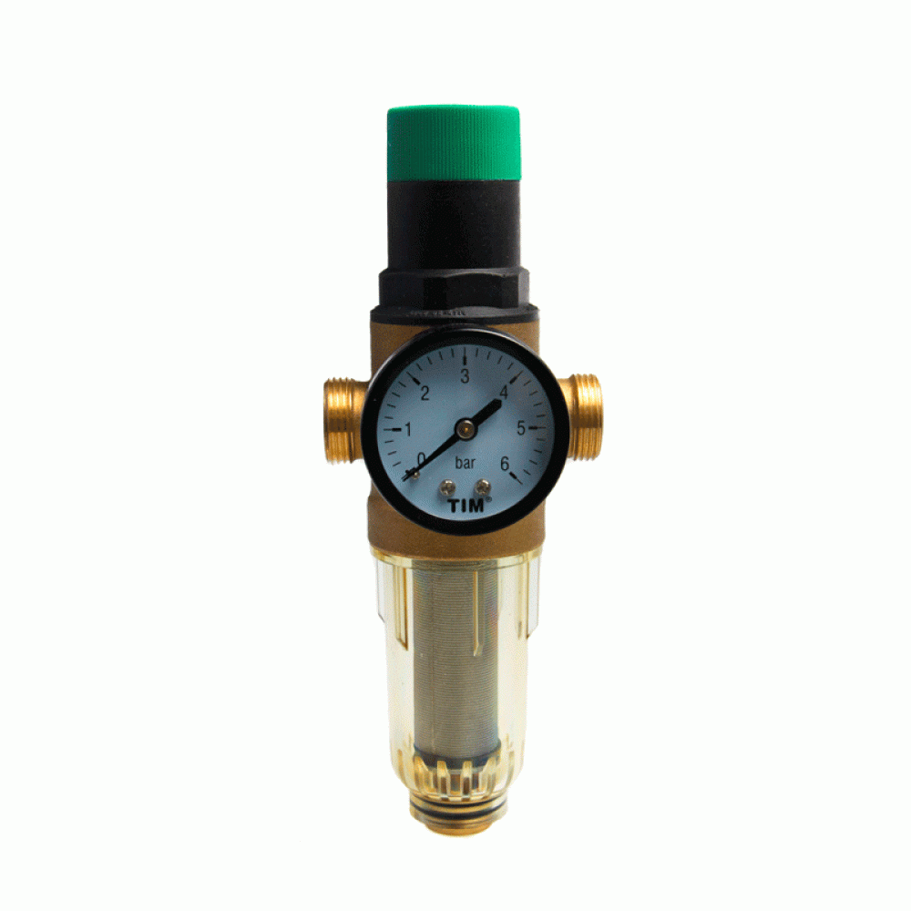 Фильтр прямой с манометром промывной с редуктором универсальный, пластиковый Фильтр прямой с манометром самоочищающийся, универсальный, латунный. Фильтрующая ячея 100 мкм. Среда применения : вода, воздух и др.