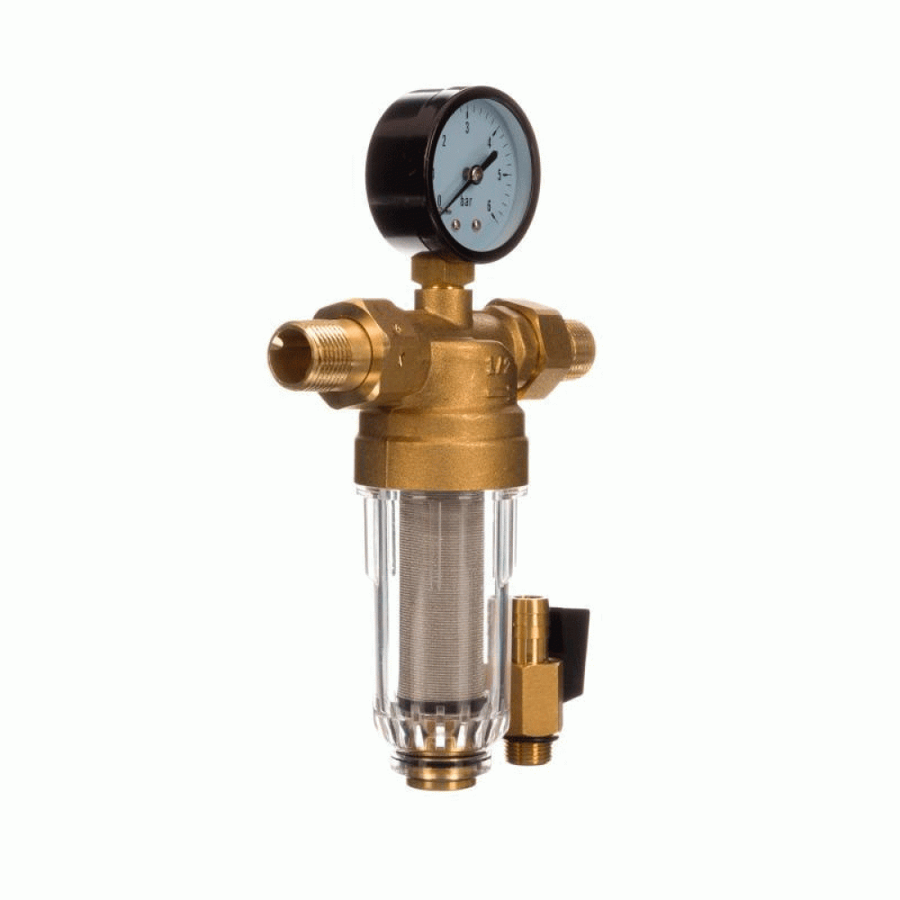 Установка этого фильтра защитит Вашу сантехнику и бытовую технику имеющую подключение к водопроводу от возможной поломки в следствии попадания внутрь прибора песка, окалины и прочего мусора. По показанию манометра определяется степень загрязнения фильтра. Скопившаяся в фильтре грязь через сливной вентиль смывается в канализацию.