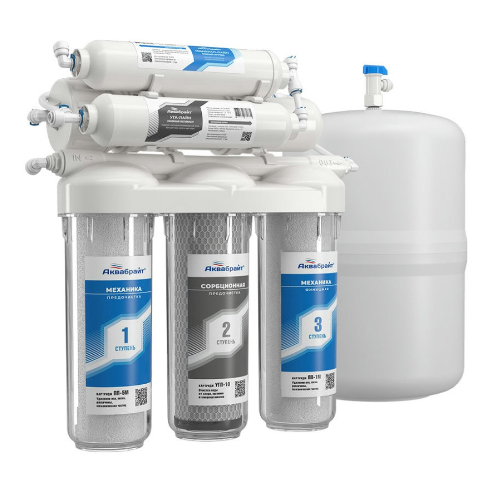 Система очистки с обратным осмосом АКВАБРАЙТ модель АБФ-ОСМО-5 с пятью ступенями очистки изготовлена из УСИЛЕННОГО ПОЛИПРОПИЛЕНА.