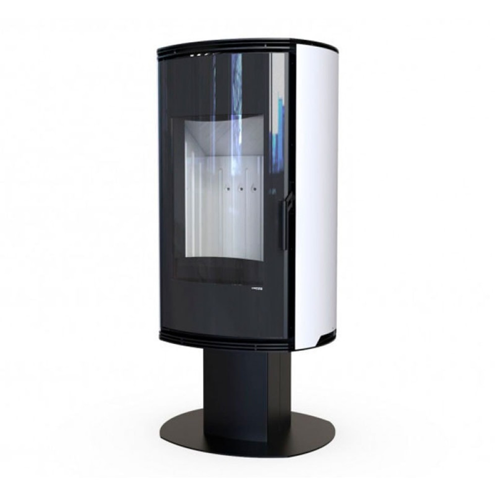 Дровяная печь DEFRO (Дефро) HOME ORBIS TOP, белая сталь отличается стильным дизайном и прочной конструкцией. Данная модель имеет форму цилиндра, который установлен на пьедестал. Дверца оснащена большим панорамным окном, которое не пачкается во время горения, благодаря системе чистое стекло.