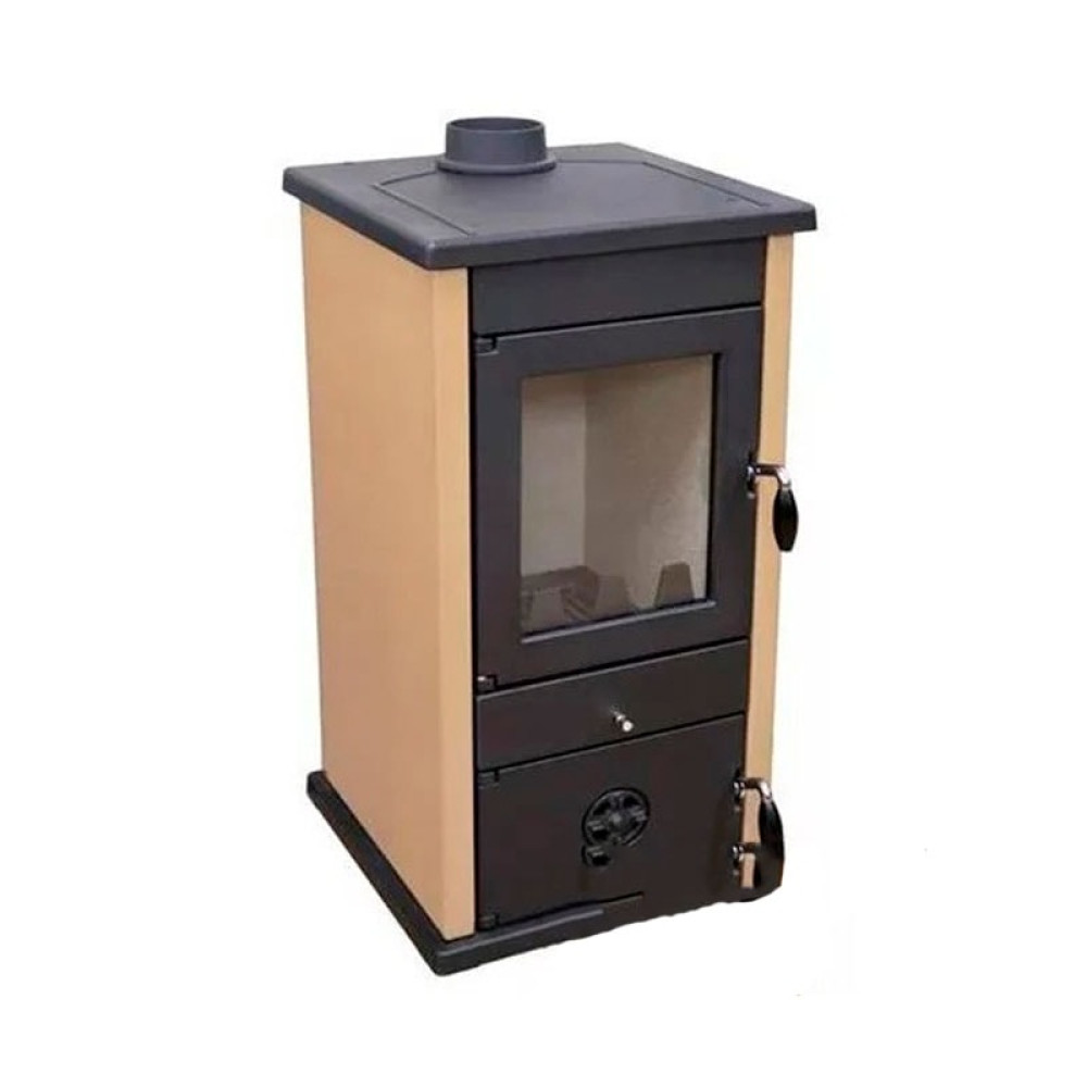 Дверца топки укомплектована термостойкой стеклокерамикой.