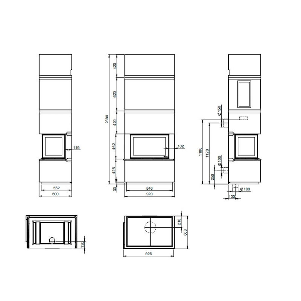 Печь-камин Nordpeis Davos U высокий топка N-29U