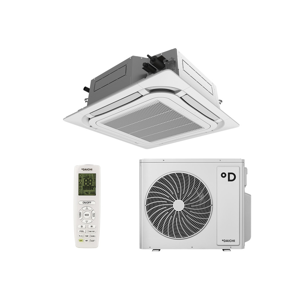 Мощный кассетный кондиционер Daichi (Даичи) DA140BLCS1R1/DF140BLS3R1/DPC06L с инверторным типом управления мощностью. Специальная конструкция наружного блока упрощает процесс запуска при отрицательных температурах. Встроенные функции обеспечивают максимальный комфорт при использовании устройства.