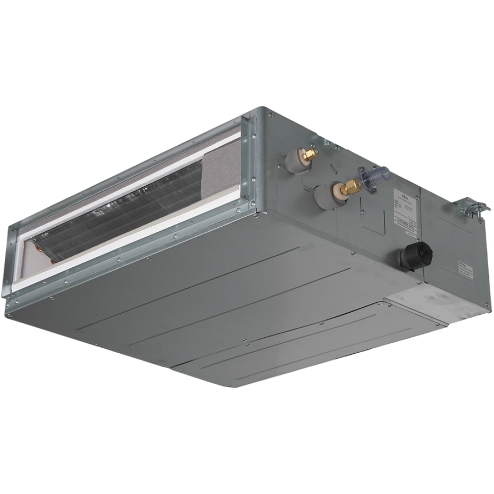 Узкопрофильные канальные внутренние блоки Fujitsu — уникальное предложение на рынке систем кондиционирования. Они отличаются наибольшей гибкостью размещения: их можно установить как за подвесным потолком при горизонтальной установке, так и в пространстве между стен при вертикальной установке. И в том, и в другом случае внутренний блок сплит-системы полностью незаметен. Внутренний блок обладает рекордно малой высотой (всего 198 мм), что позволяет устанавливать данную модель в ограниченном пространстве. При запотолочной установке можно осуществлять забор воздуха как с нижней, так и с тыльной стороны внутреннего блока. Непревзойденный уровень статического давления вентилятора 90 Па гарантирует подачу теплого воздуха на уровне пола при работе на обогрев помещения. Отдельно следует отметить низкий уровень шума при работе этой модели внутреннего блока.