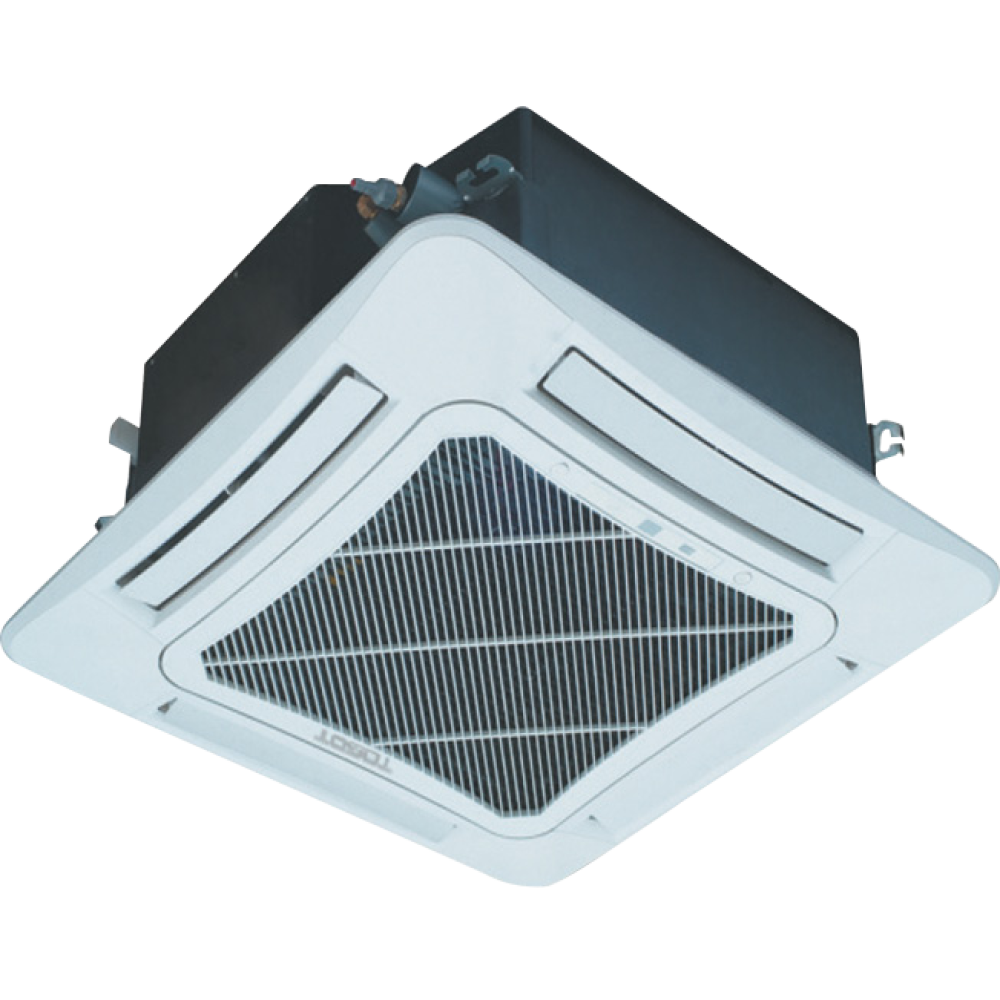 Наиболее эффективным решением для создания комфортного микроклимата в помещениях большой площади являются кассетные кондиционеры. Блоки устанавливаются в подвесной потолок и обеспечивают равномерное охлаждение или обогрев за счет подачи воздуха в четырех направлениях. Внутренние блоки кассетного типа универсальны для серий наружных блоков Free Match и Free Match Super.