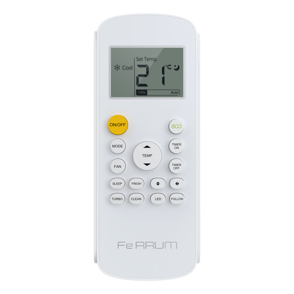 Ferrum (Феррум) Force iFIS09F2С/iFOS09F2С – это модель инверторного настенного кондиционера, рассчитанного на относительно небольшие помещения: площадью до 25 м2. Он оснащен современным пультом ДУ с дисплеем, который обеспечивает точную настройку температуры, скорости, режима, а также положения жалюзи. Все это позволяет создать комфортный микроклимат.