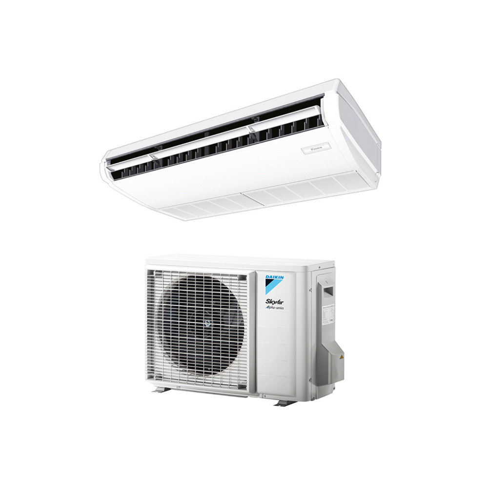 Для обычных потолков высоких помещений подходят подпотолочные сплит-системы Daikin, состоящие из наружных блоков и внутренних, размещаемых под потолком. Большая эффективность и производительность наружных блоков обеспечивает стабильность устанавливаемой температуры в помещении. Преобразована конструкция некоторых частей системы, что дает ей уменьшение потребления энергии.