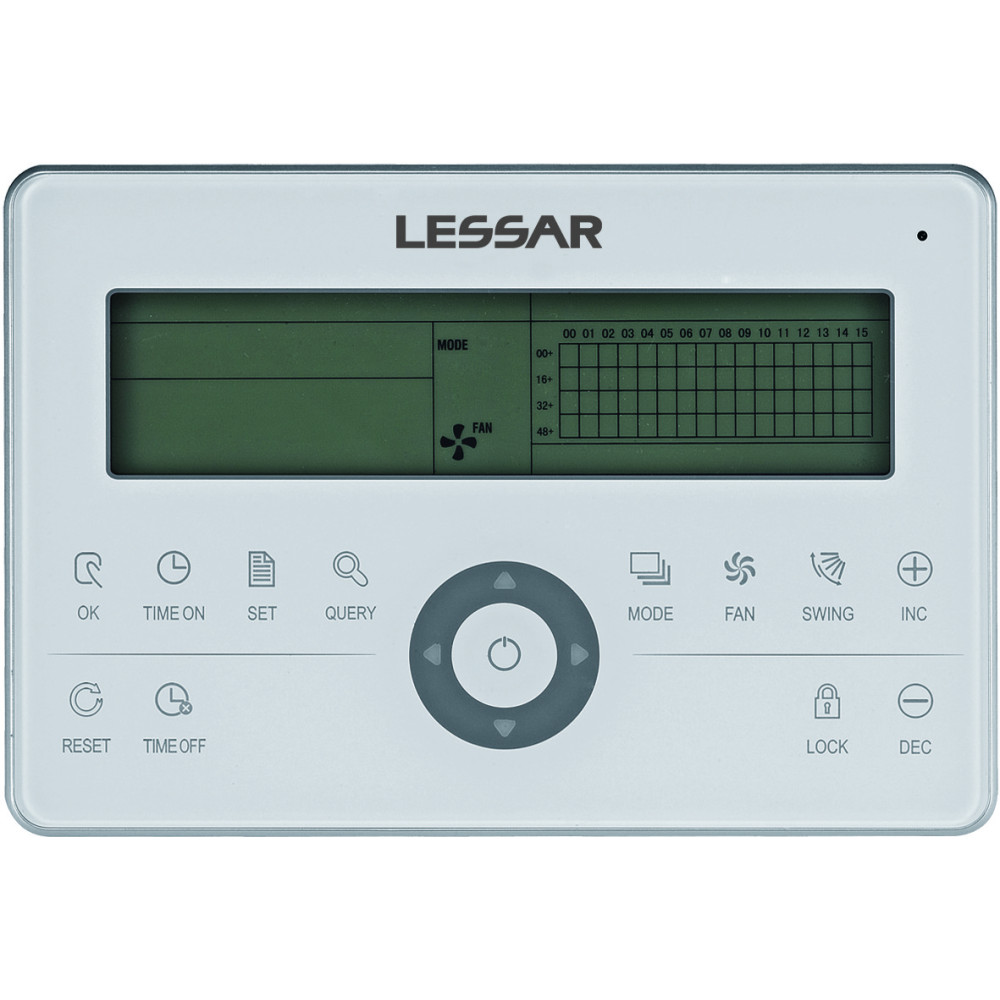 Сенсорный проводной пульт центрального управления мультизональными системами кондиционирования и полупромышленными мульти сплит-системами Lessar LZ-UPW7 (Лессар) – устройство, обеспечивающее полноценный контроль и управление работой всей системы с одного пульта, который может быть установлен в помещении с ограниченным доступом, где управление будет осуществляться только компетентными и ответственными лицами. Установка необходимых параметров работы каждого из внутренних блоков системы, активация режимов и функций, подходящих для каждого помещения в отдельности, контроль и информирование о возникающих неполадках, поступающие на этот пульт, позволяют обеспечить максимальный уровень энергоэффективности и слаженности работы всей системы.