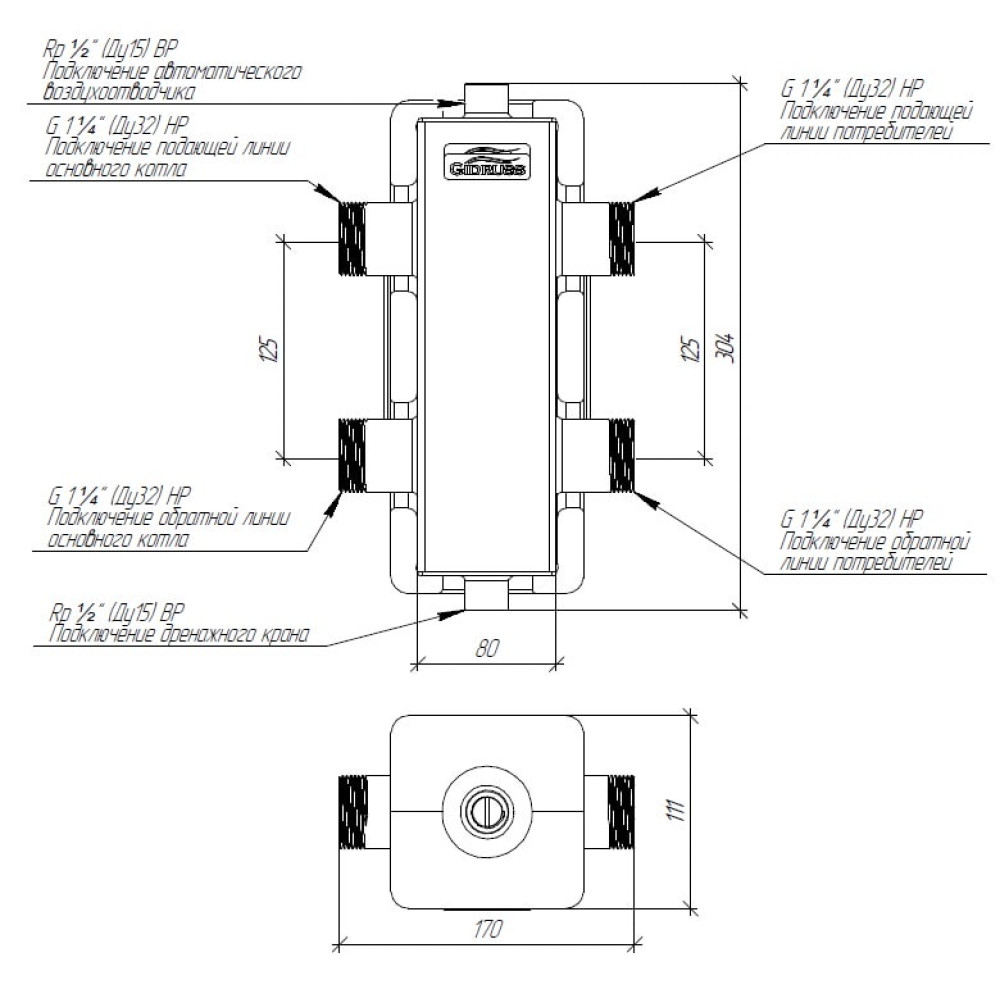 Гидроразделитель в теплоизоляции GR-80-32.EPP необходим в системах отопления до 700 м² для обвязки двух настенных котлов до 80 кВт или одного напольного с внешним насосом до 70 кВт.