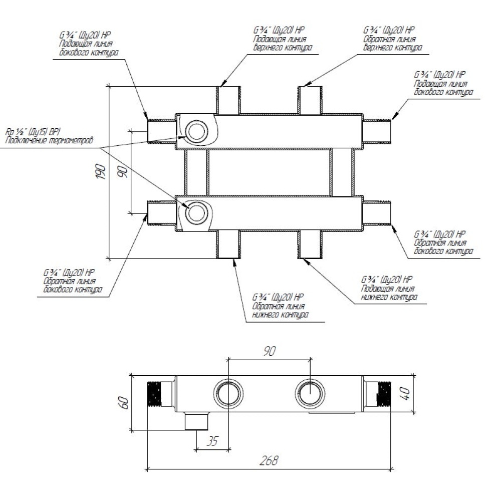 Кольцевой коллектор Gidruss для отопления на 2 контура RMSS-40-2
