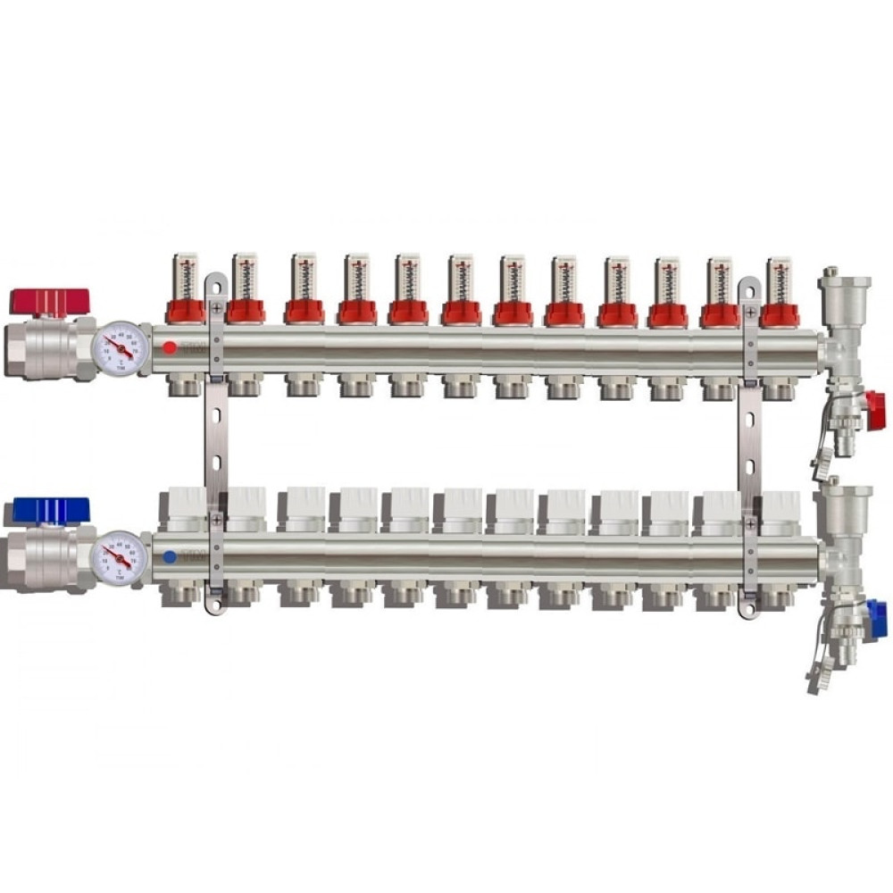 Коллектор для тёплого пола с расходомерами Tim на 12 выходов (арт.KA012)