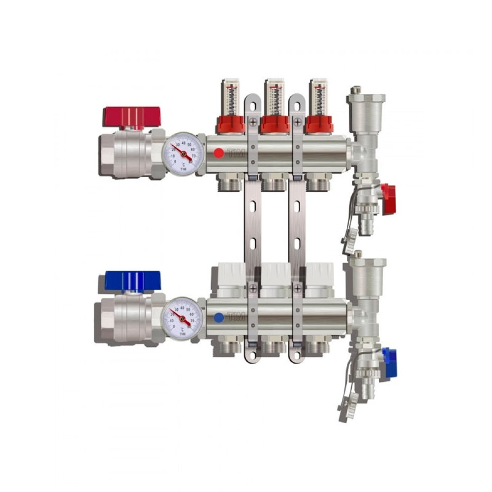 Коллектор для тёплого пола с расходомерами Tim на 3 выхода (арт.KA003)