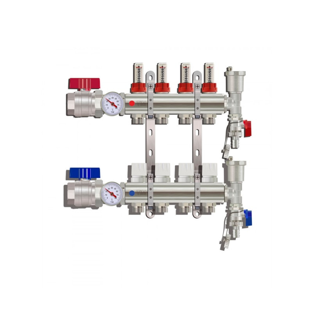 Коллектор для тёплого пола с расходомерами Tim на 4 выхода (арт.KA004)