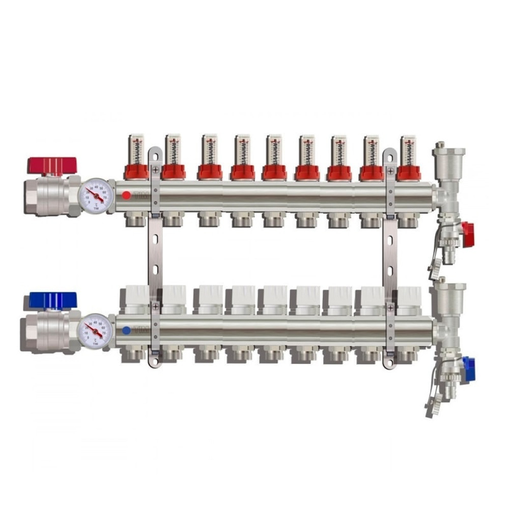 Коллектор для тёплого пола с расходомерами Tim на 9 выходов (арт.KA009)