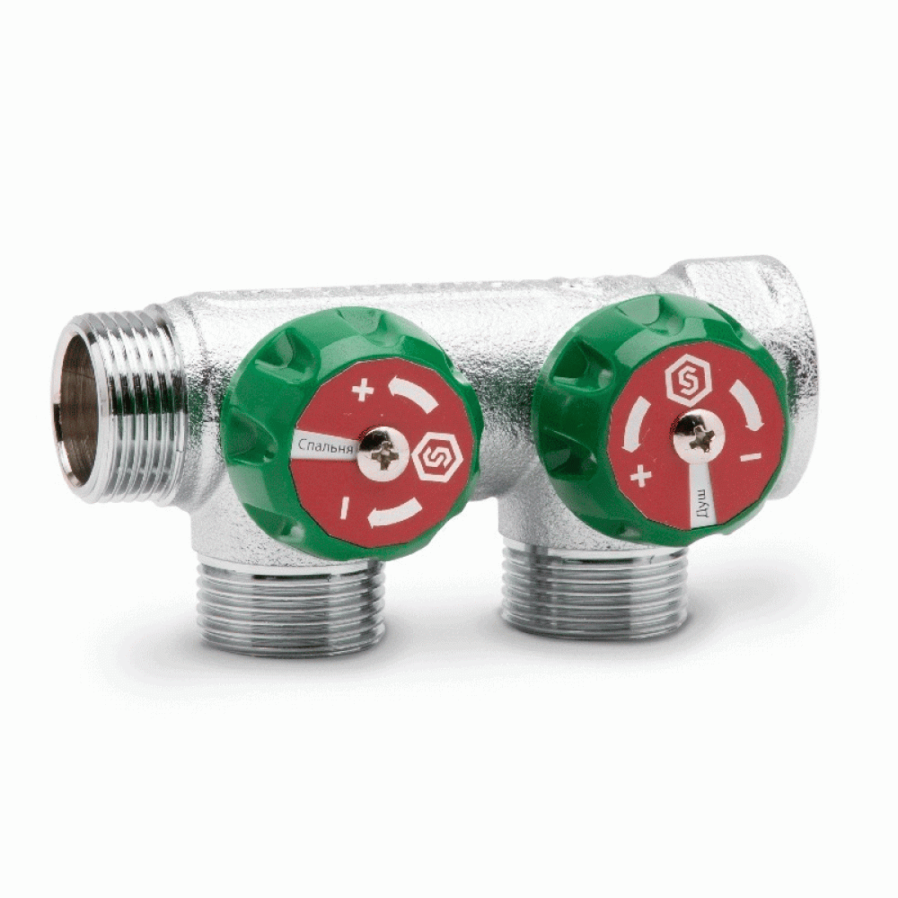 Коллектор распределительный регулирующий Stout 3/4"x1/2" с плоским уплотнением с 2 отводами (SMB-6849-341202) служит для распределения потока транспортируемой среды в системах водоснабжения и отопления путём перекрытия клапанов на отводах.
