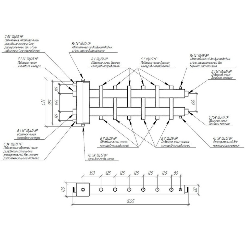 Коллектор Gidruss BM-150-7DU до 150 кВт 1 1/2" 7 контуров
