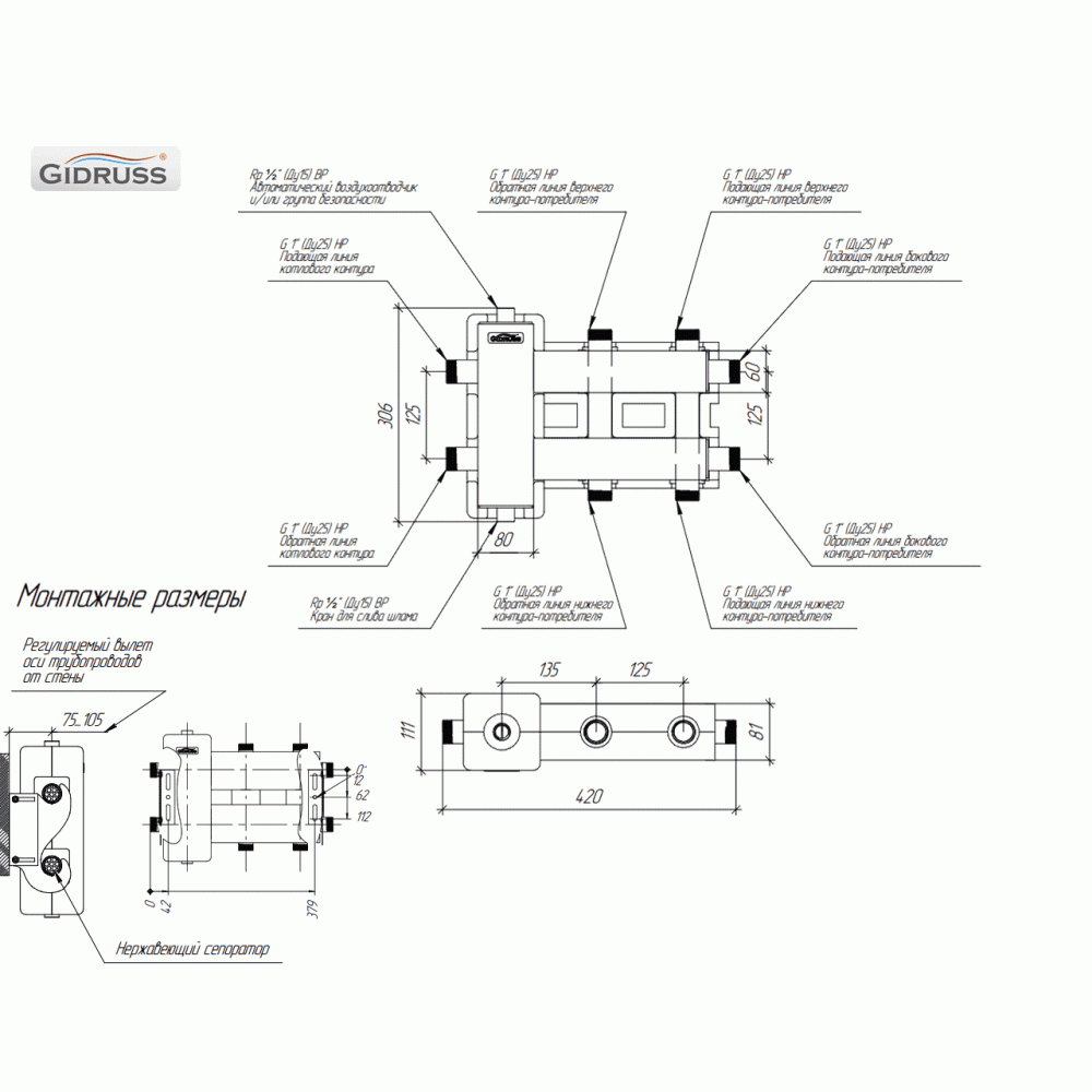 Коллектор Gidruss BM-60-3DU EPP до 60 кВт 1" 3 контура EPP термоизоляция