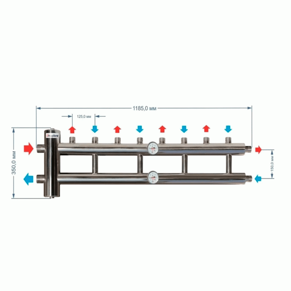 Внимательно !!!! Данный коллектор поставляется без термоманометров, сливных кранов и кронштейнов. Заказываются отдельно !
