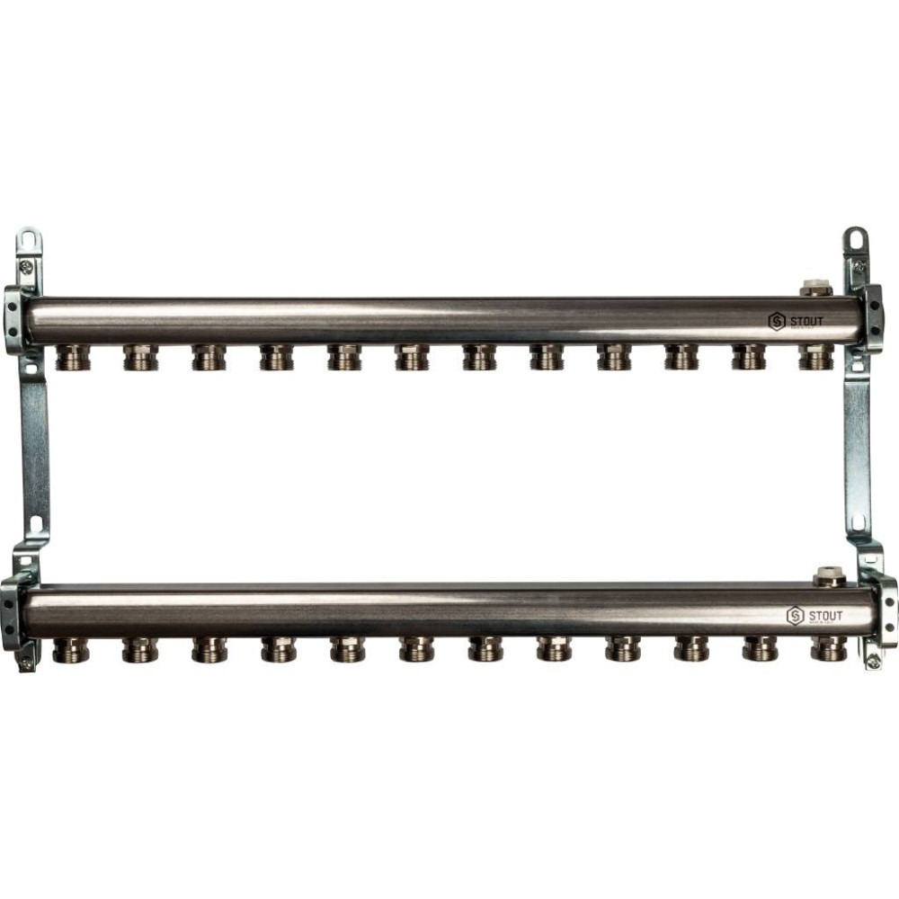 Коллектор из нержавеющей стали для радиаторной разводки на 12 выходов Stout