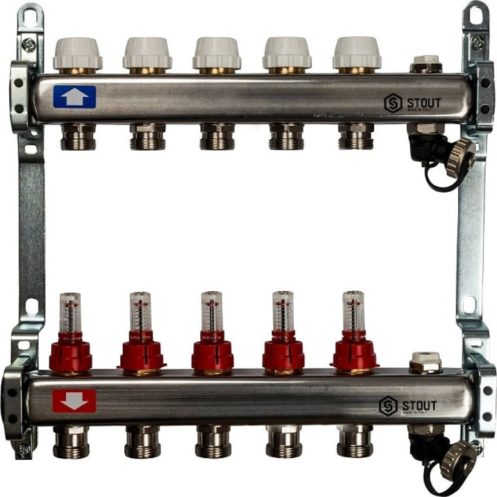 Коллектор из нержавеющей стали с расходомерами, с клапаном вып. воздуха и сливом 5 вых. Stout SMS-0927-000005