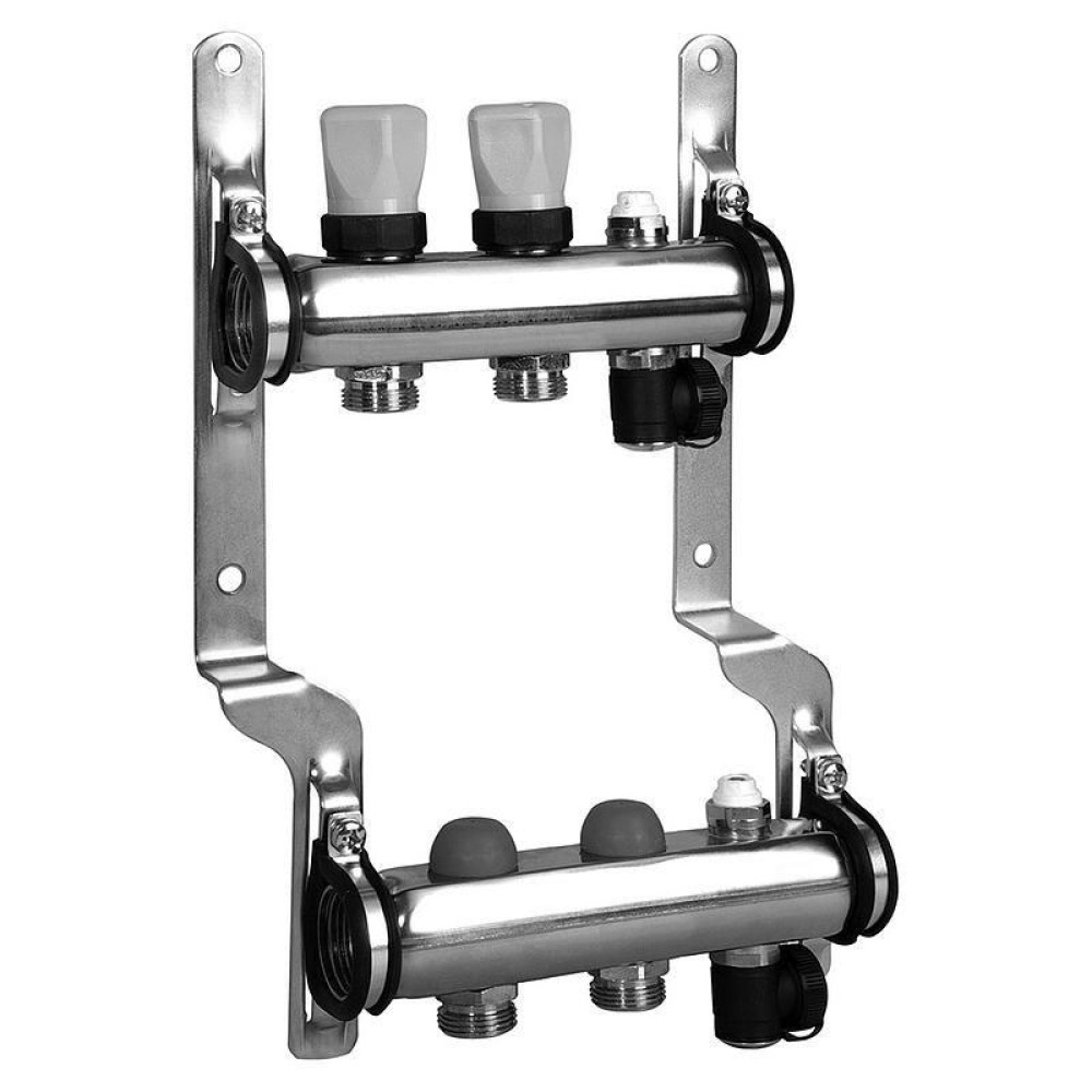 Распределительные коллекторы для отопительных систем предназначены для транспортировки и распределения теплоносителя по разным контурам напольного отопления.