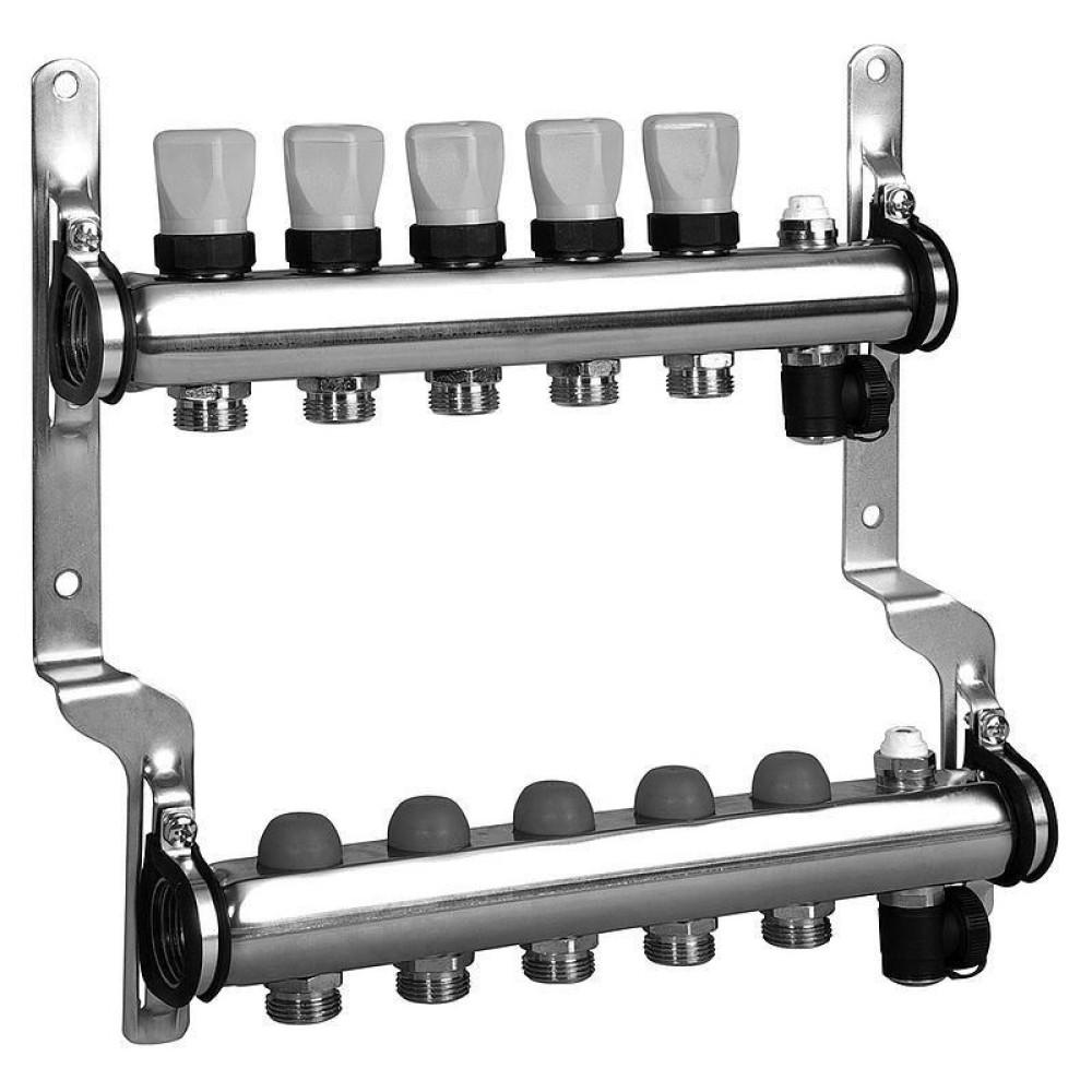 Распределительные коллекторы для отопительных систем предназначены для транспортировки и распределения теплоносителя по разным контурам напольного отопления.