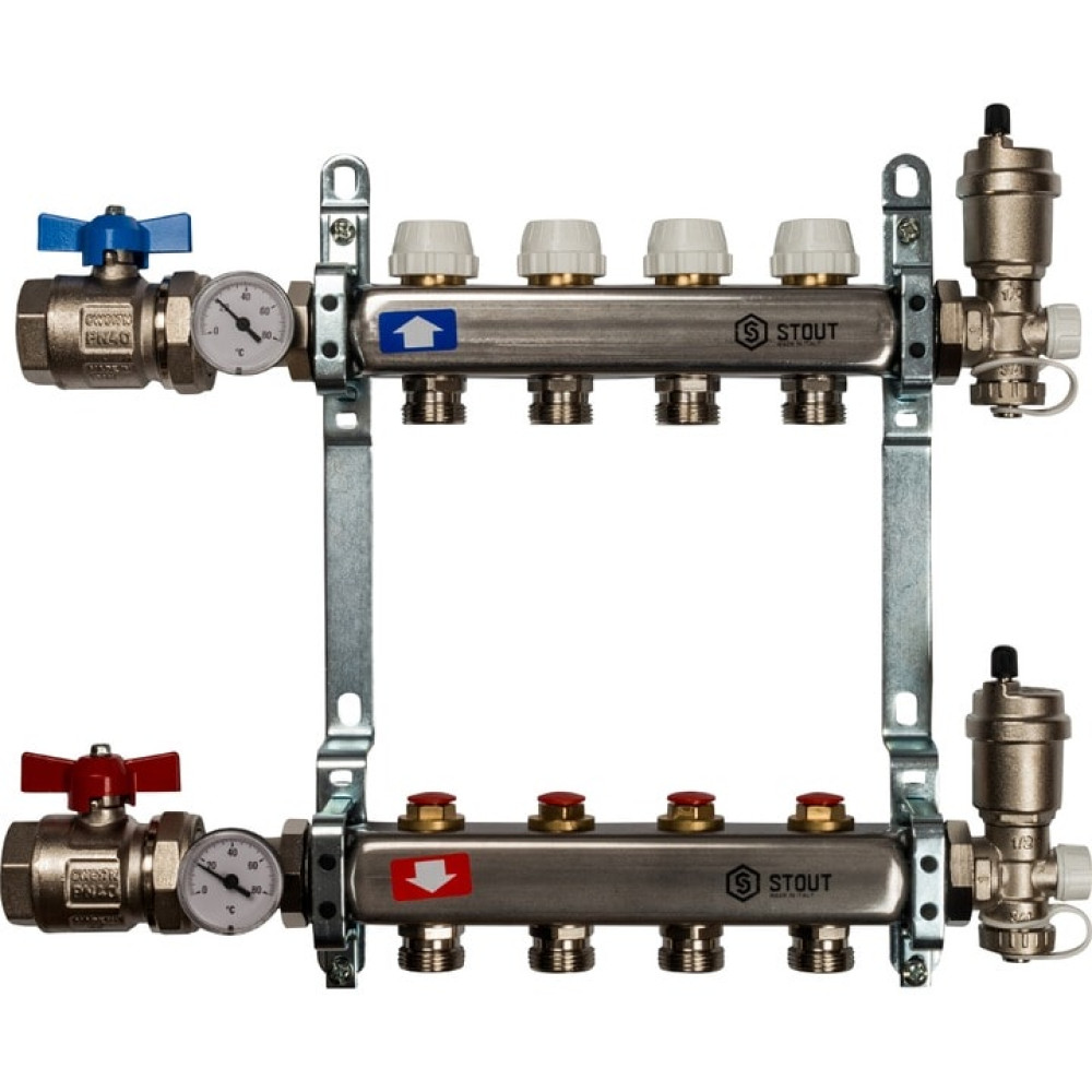 Коллектор из нержавеющей стали в сборе без расходомеров на 4 выхода Stout SMS 0912 000004