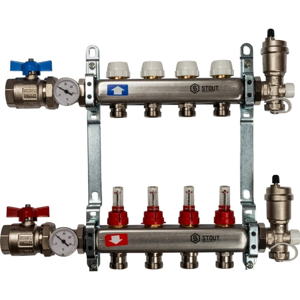 Коллектор из нержавеющей стали в сборе с расходомерами на 4 выхода Stout SMS 0907 000004